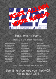 | 8 feb 2011 17:37 | Poster niet alleen voor nerds (A4).png (bestand) | 2,96 MB | Nieuwe A4-versie met grotere traanplaat. Wellicht te low-res voor printen. | 4 | |